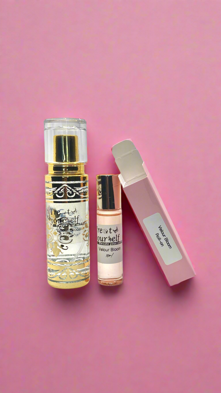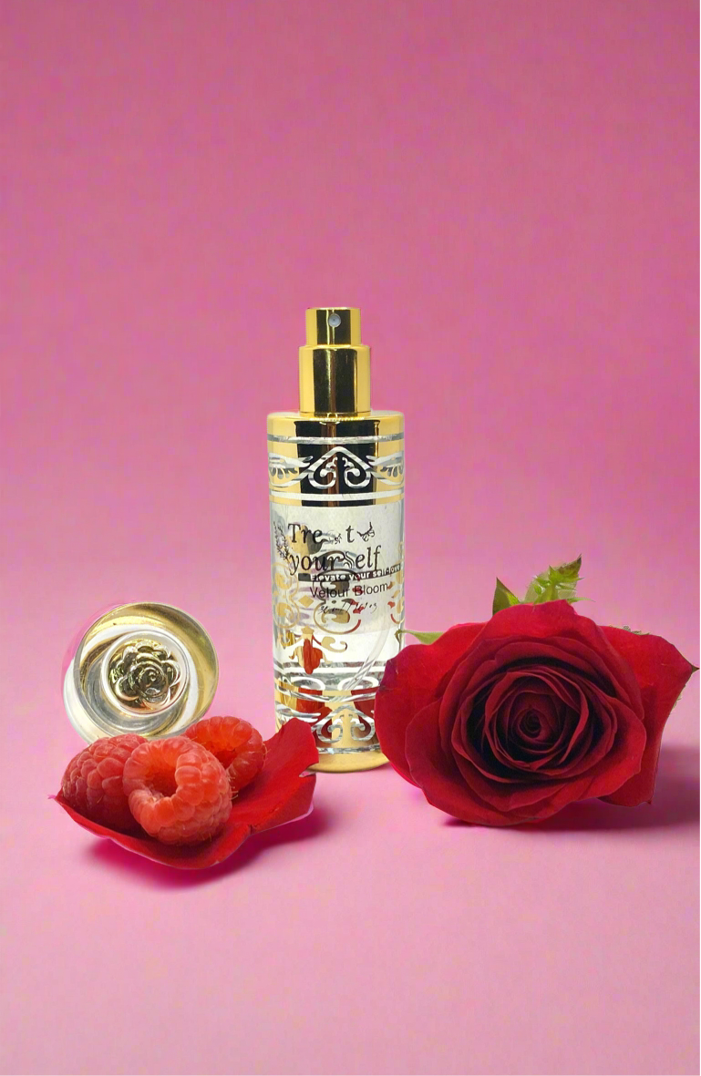 Description: "Velour Bloom" is a radiant bouquet of velvety petals and sun-kissed fruits, blossoming with graceful intensity. It opens with the delicate, romantic allure of rose, lily, and jasmine, weaving together a soft yet opulent floral heart. As the fragrance unfolds, juicy bursts of raspberry and berries add a lively sweetness, while hints of tropical fruits bring a lush, exotic twist. The result is a fragrance that feels like a blooming garden at golden hour—feminine, vibrant, and wrapped in soft, velour-like richness.
